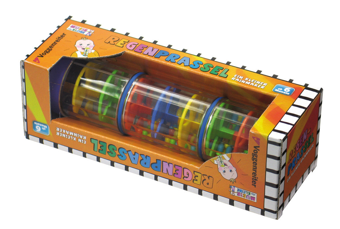 Dieses Klangspielzeug ist dem beliebten exotischen Rainmaker nachempfunden und imitiert, wie der Name schon sagt, das Geräusch plätschernden Regens. Regenbogenfarbige Kügelchen strömen beim Umdrehen durch die durchsichtige Röhre. Das klingt nicht nur schön, so...