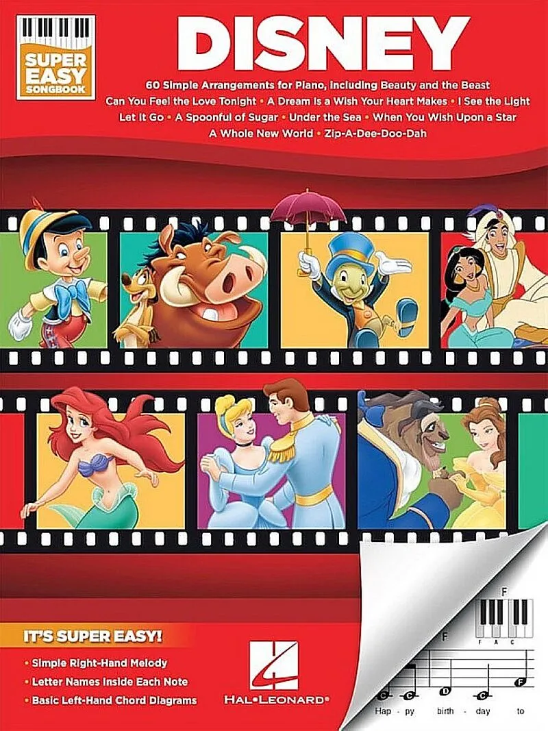 Klappentext (Super Easy Songbook). It's super easy! This series features accessible arrangements for piano, with simple right-hand melody, letter names inside each note, basic left-hand chord diagrams, and no page turns. This edition includes 60 Disney favorit...