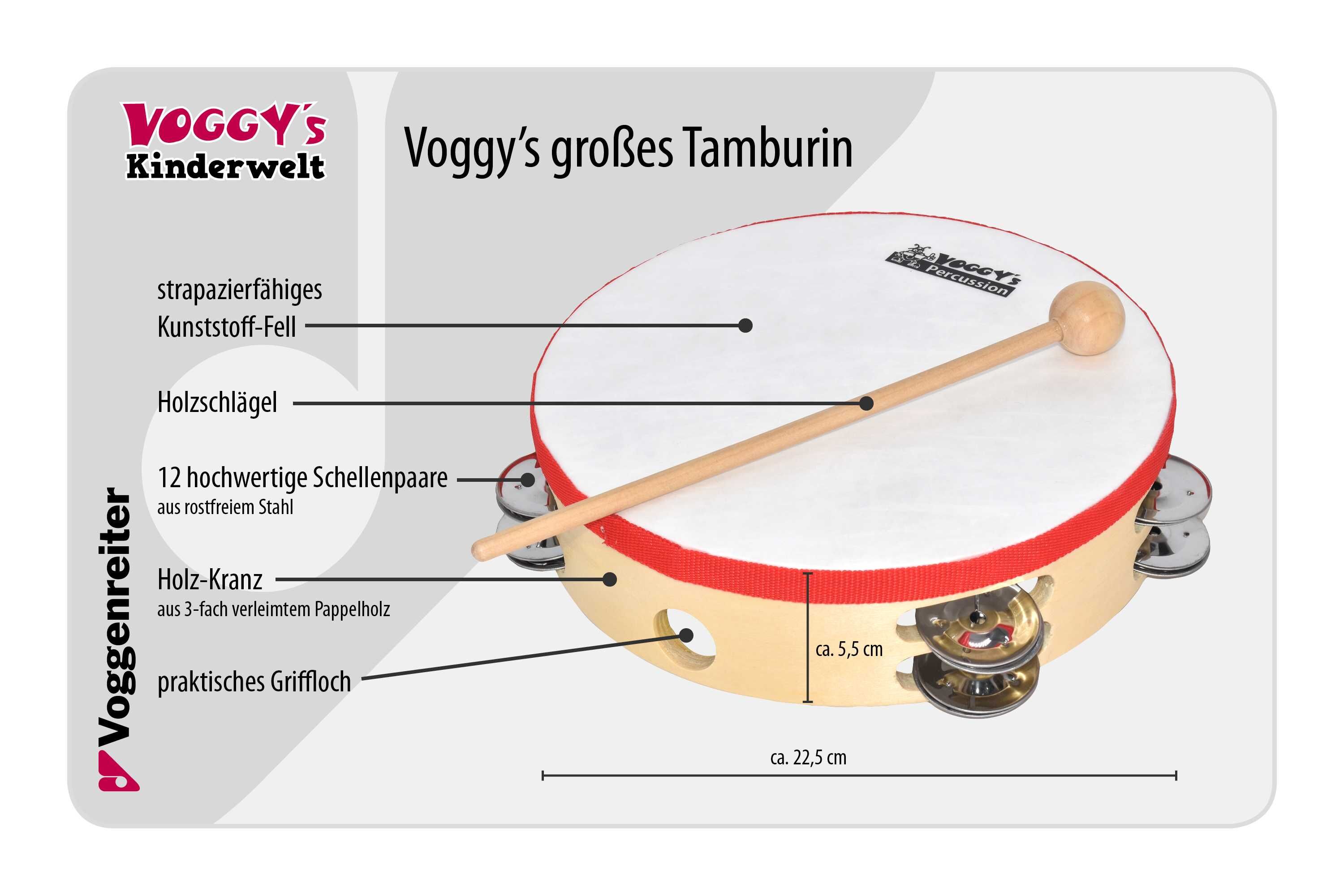 Material: Pappelholz. 12 Schellenpaare aus rostfreiem Stahl. Format: 22,5 x 5,5 cm. Mit Holzschlegel. Sprache der Gebrauchsanweisung: D/GB+I/F/NL/ES/H/S/PL/DK/SI/HR