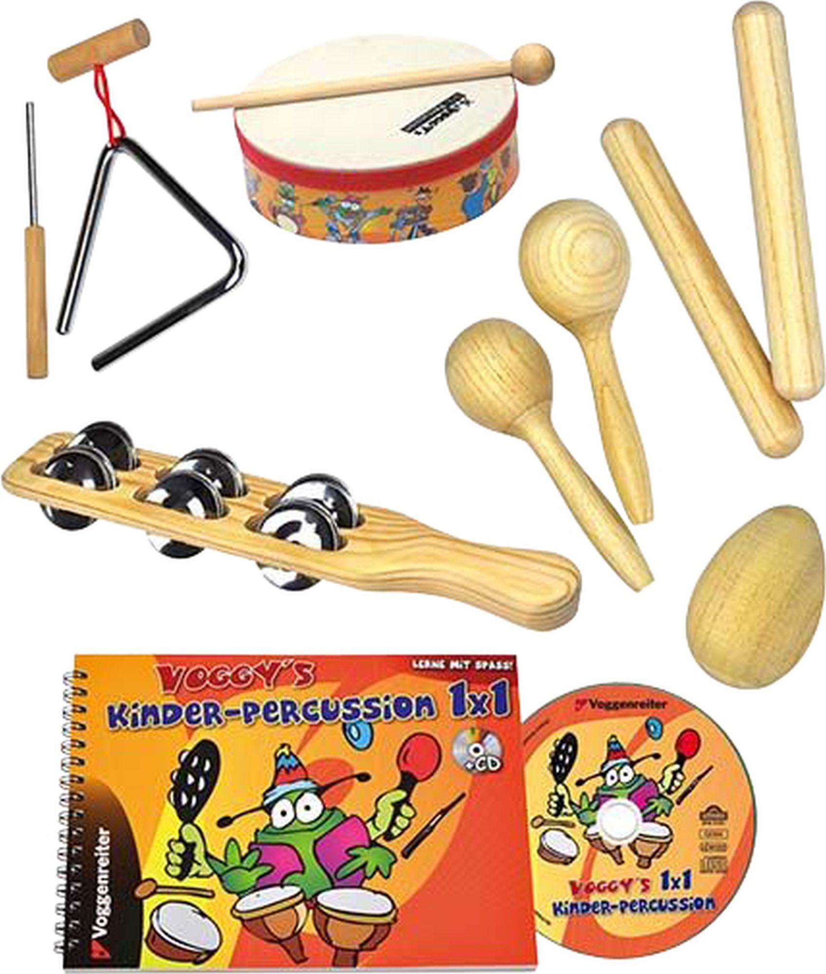 Percussion-Set Rasseln, Scheppern, Trommeln - In diesem Karton ist Rhythmus und viel Spass drin! Musizieren unterstützt die geistige und körperliche Entwicklung Ihres Kindes auf einzigartige Weise. Fantasie und soziale Kompetenz, aber auch feinmotorische Fähig...