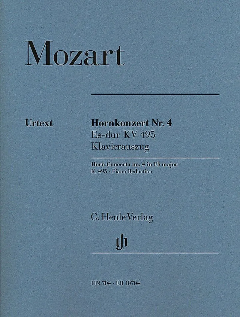 _mit Stimmen für Horn in Es und F; Orchestermaterial bei Breitkopf & Härtel Im Autograph seines bekanntesten Hornkonzertes schrieb Mozart merkwürdigerweise nicht nur mit schwarzer Tinte, sondern auch mit den Farben rot, grün und blau. Ob er dabei nur vom S...