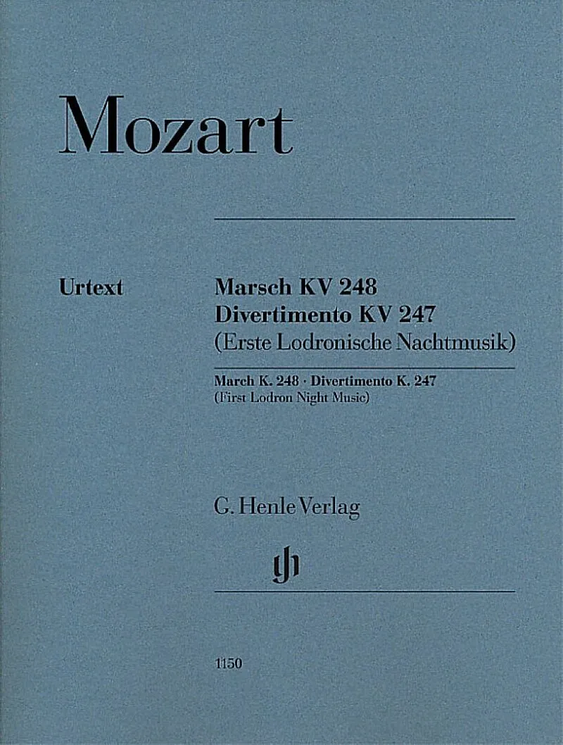 _für 2 Hörner (F), 2 Violinen, Viola und Basso Das zum Namenstag der Gräfin Antonia Lodron geschriebene F-dur-Divertimento KV 247 erklang erstmals am 18. Juni 1776 in Salzburg. Der kleine Marsch KV 248 begleitete damals vermutlich den Auf- oder Abzug der Musik...