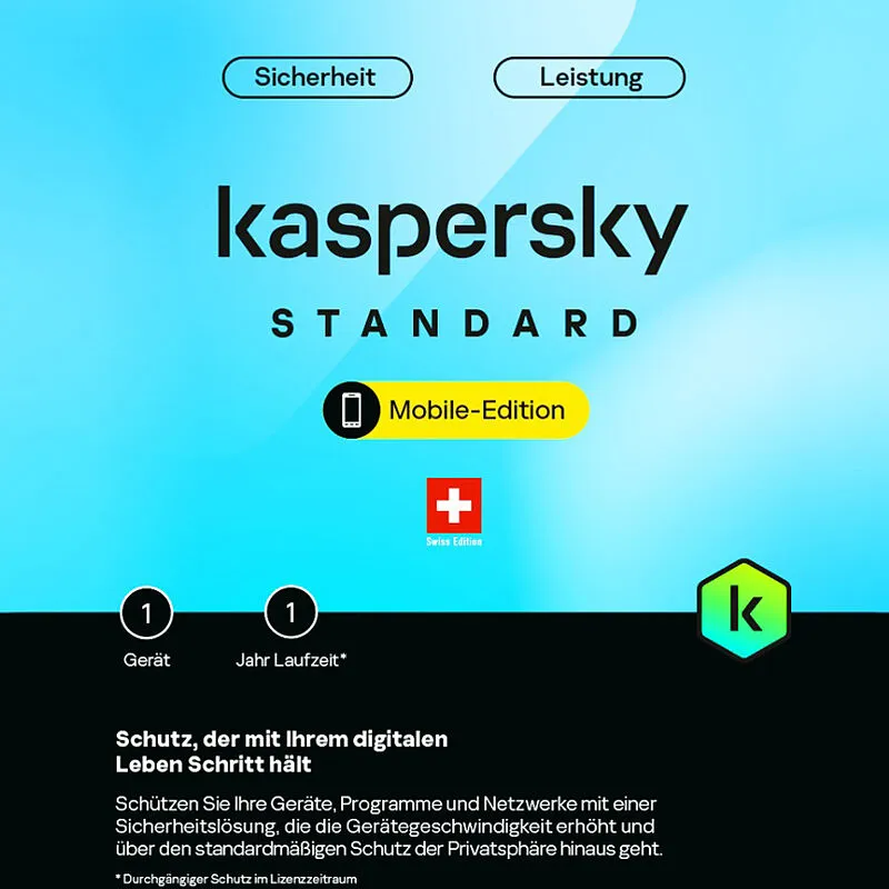Kaspersky Standard - Mobile Edition - ausgezeichneter Schutz, der mit Ihnen Schritt hält. Die Lösung schützt Sie, Ihre Daten und Anwendungen mit Viren- und Phishing-Schutz, warnt Sie vor schwachen Geräteeinstellungen und erhöht mit speziellen Tools die Geräteg...