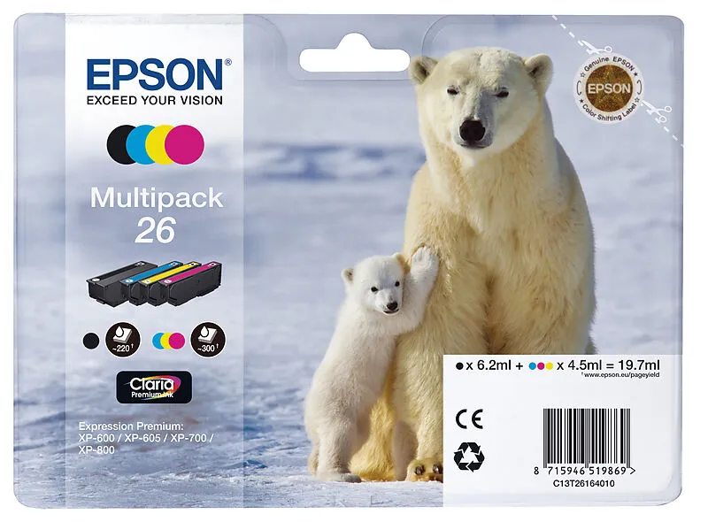 EPSON Multipack Tinte CMYBK T261640 XP 700/800 300/220 Seiten