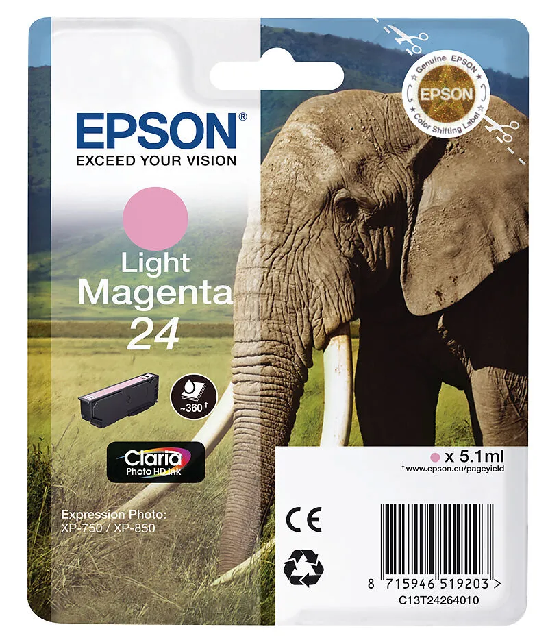 EPSON Tintenpatrone 24 light magenta T242640 XP 750/850 360 Seiten
