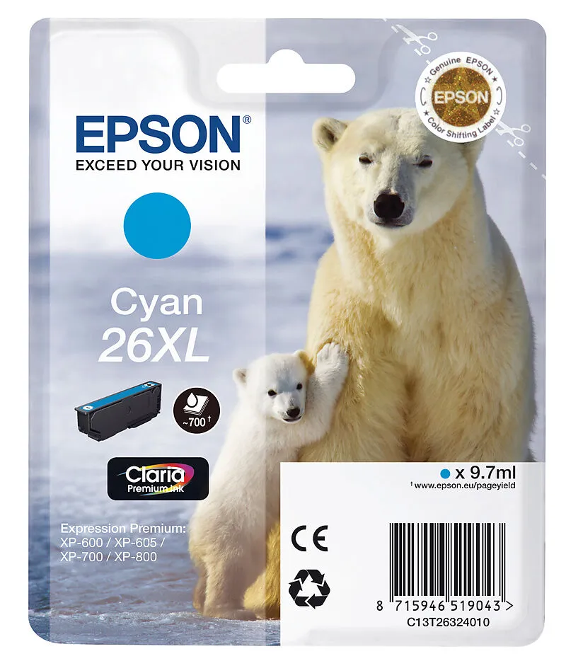 EPSON Tintenpatrone 26XL cyan T263240 XP 700/800 700 Seiten