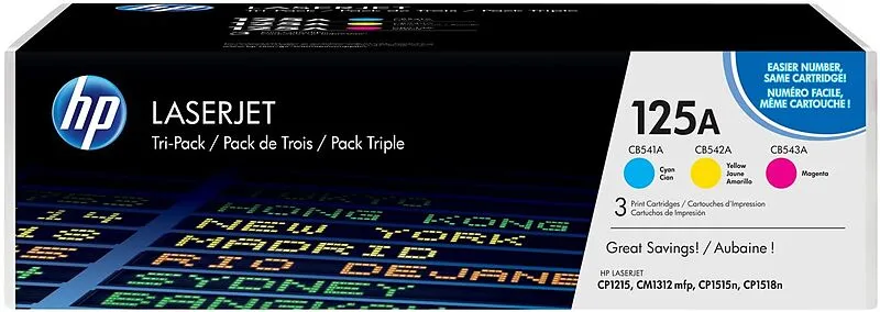 HP - 125A - Tonerkartusche, Cyan, Magenta, Gelb Mehr drucken heisst mehr sparen und zwar ohne Einbussen beim zuverlässigen, stressfreien Druckbetrieb mit Original HP. Die neuen HP 125A LaserJet Dreierpacks konzipiert für hohe Druckvolumen in Fotoqualität sind...
