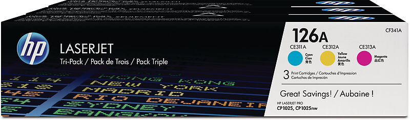HP - 126A - Tonerkartusche, Cyan, Magenta, Gelb HP 126A LaserJet Tonerkassetten cyan/magenta/gelb im Dreierpack bieten professionelle Druckqualität und ein besseres Preis-Leistungs-Verhältnis als einzelne Kassetten. Kaufen Sie ein Paket mit drei Farbtonerkass...